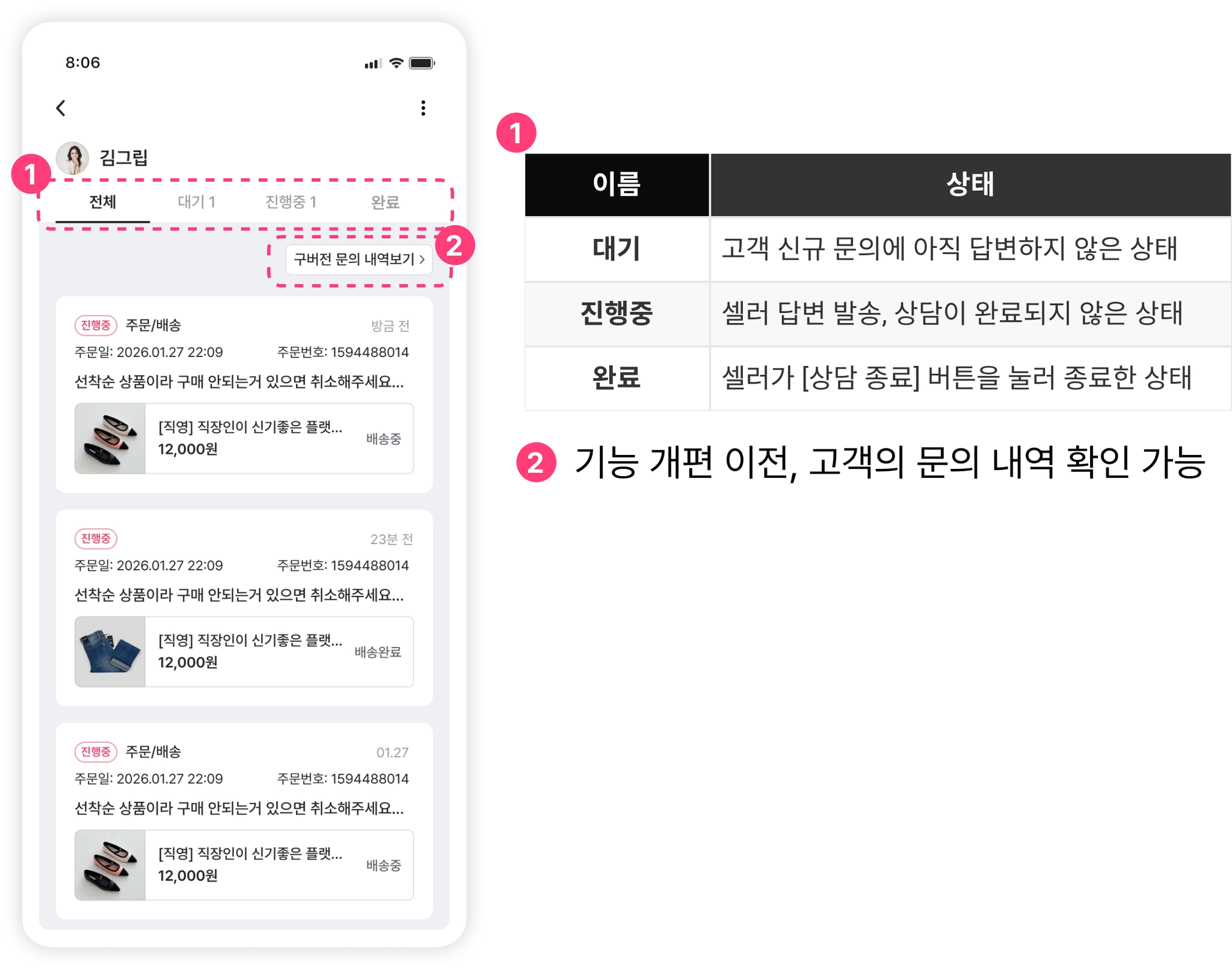 1. 개편 전, 이전 문의 관련